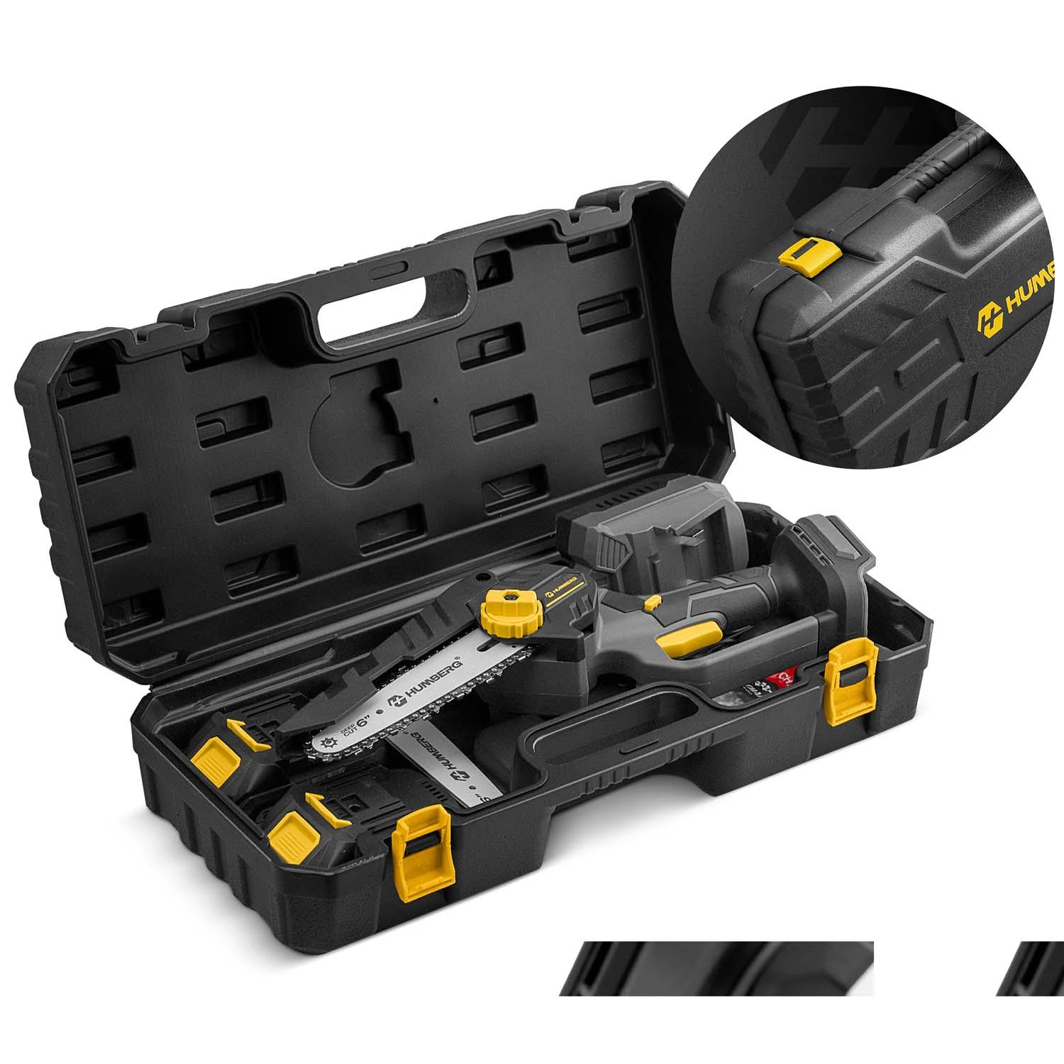 ✅ MINI ŽAGA ✅ 2 x BATERIJA ✅ 2 x MEČ ✅ 2 x VERIGA ​​✅ ŠČITNIK VERIGE ✅ POLNILNA POSTAJA ✅ ŠKATLA Vse, kar potrebujete za začetek. Vse v praktični torbici.
