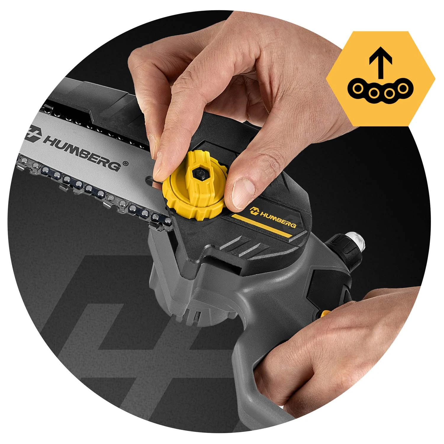 Z lahko dostopnim in enostavnim ročajem lahko hitro zategnete verigo brez orodja. Nič več iskanja ključa ali odpiranja ohišja!