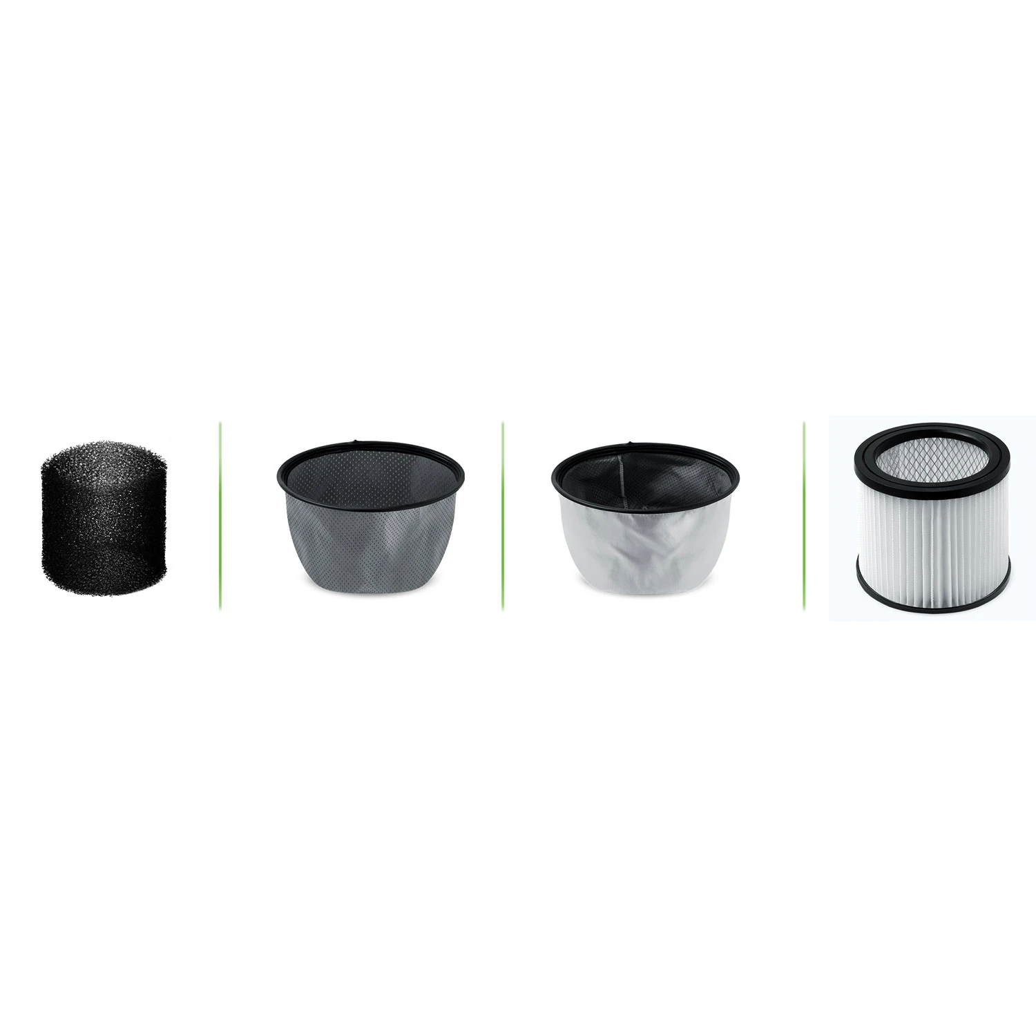 Komplet vsebuje štiri filtre, ki vam pomagajo ohranjati čist zrak. Vsak filter je zasnovan za različne pogoje delovanja, za izboljšanje učinkovitosti filtracije pa lahko uporabite trojni sistem (goba, bombaž in HEPA), kar vam daje 100-odstotno zaupanje v kakovost zraka, ki prihaja iz naprave.