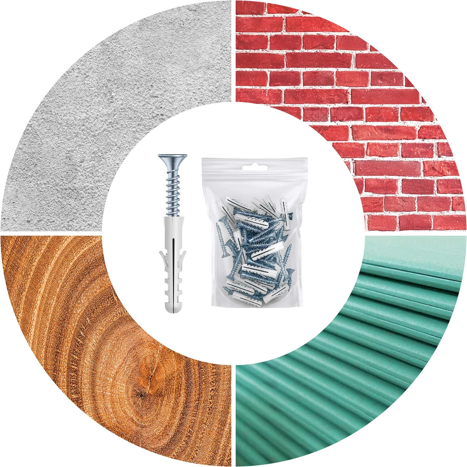 Razširitveni vijaki, ki so priloženi kompletu, so idealni za montažo na različne površine, kot so: