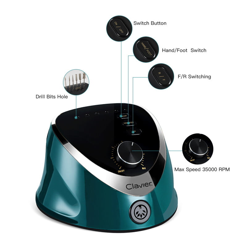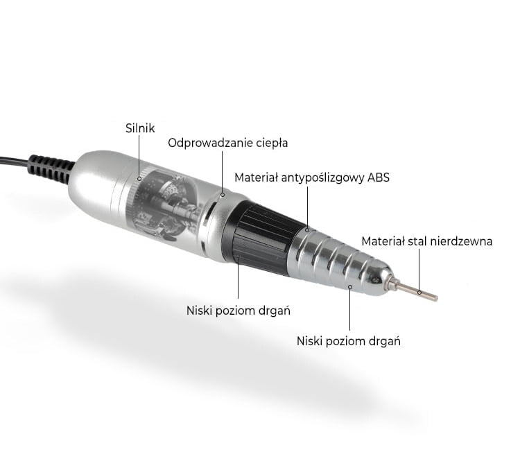 Večnamenska naprava, ki bo vašim nohtom dala obliko vaših sanj, odlično pripravila nohtno ploščo za naslednje oblikovanje, odlično odstranila obnohtno kožico za kombinirano manikuro in pedikuro, bo postala neverjetno preprosta in hitra. Zahvaljujoč svoji moči se rezilo ne zatika in ne izgubi vrtenja niti v težkih pogojih. Gladka in popolna regulacija v območju od 0 do 35.000 vrt/min – poteka iz podstavka in zagotavlja popolno udobje pri delu. Glava TWIST -LOCK omogoča menjavo rezila v enem zamahu, brez potrebe po uporabi neudobnih ključev ali vreten, zato je idealna, saj ni potrebe po uporabi sile!