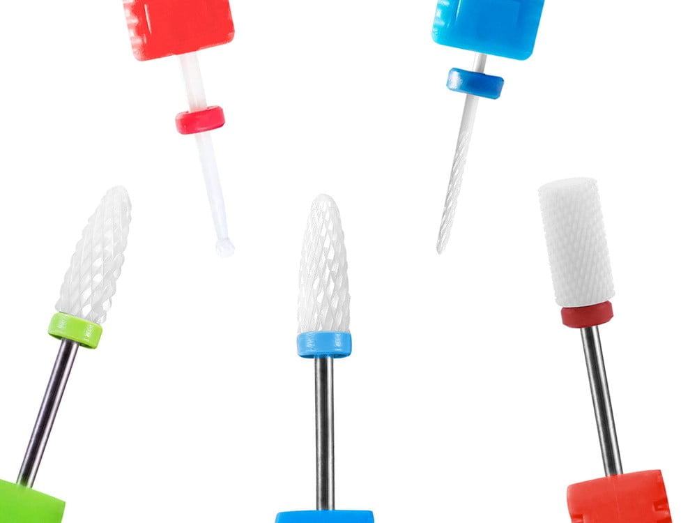 Pet keramičnih nastavkov za brušenje nohtov. Posamezno pakirano v prozornih škatlah.