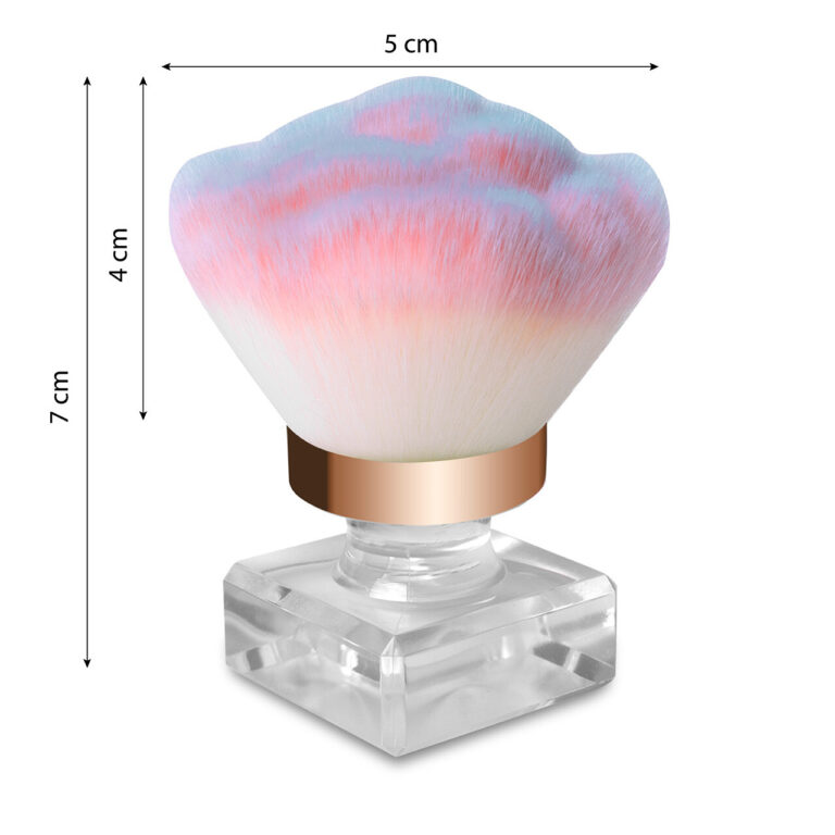 Profesionalen in eleganten čopič za pudranje je bistveni del opreme vsakega stilista za nohte. Njegova okrogla oblika je odlična za odstranjevanje prahu z nohtov, tako akrilnih kot geliranih. Ta čopič je odličen tudi za nanašanje ličil za obraz, pudra v prahu, bronzerja ali osvetljevalca, saj zagotavlja natančno in enakomerno porazdelitev izdelka po koži. Zahvaljujoč elektrificiranim vlaknom čopič natančno privlači in odstrani ves prah s površine piljenih konic in nohtov. Velik čopič za pudranje ali pudranje je bistveno orodje za oblikovanje. Je popoln za delo vsakega stilista za nohte ali ljubitelja ličenja. Njegova masivna, dizajnerska konstrukcija je izdelana iz izjemno mehkih in puhastih ščetin, ki zagotavljajo odličen občutek udobja v stiku s kožo.