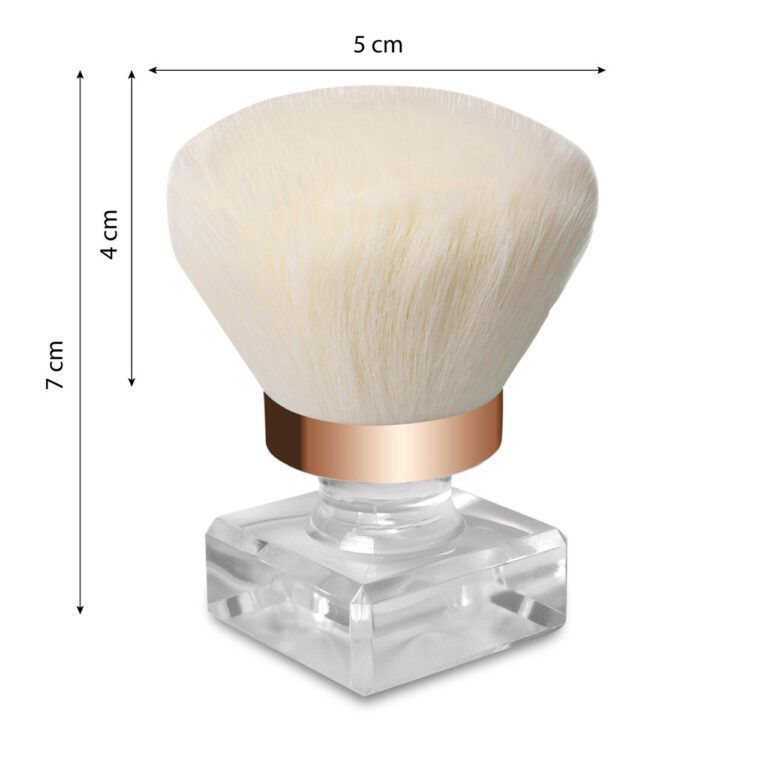 Profesionalen in eleganten čopič za pudranje je bistveni del opreme vsakega stilista za nohte. Njegova okrogla oblika je odlična za odstranjevanje prahu z nohtov, tako akrilnih kot geliranih. Ta čopič je odličen tudi za nanašanje ličil za obraz, pudra v prahu, bronzerja ali osvetljevalca, saj zagotavlja natančno in enakomerno porazdelitev izdelka po koži. Zahvaljujoč elektrificiranim vlaknom čopič natančno privlači in odstrani ves prah s površine piljenih konic in nohtov. Velik čopič za pudranje ali pudranje je bistveno orodje za oblikovanje. Je popoln za delo vsakega stilista za nohte ali ljubitelja ličenja. Njegova masivna, dizajnerska konstrukcija je izdelana iz izjemno mehkih in puhastih ščetin, ki zagotavljajo odličen občutek udobja v stiku s kožo.