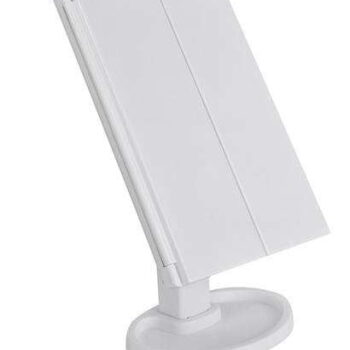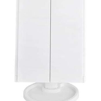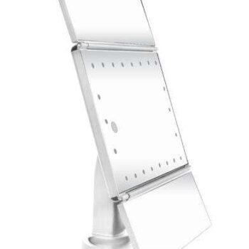 - NASTAVLJIV NAGON – zahvaljujoč možnosti nastavitve nagiba ogledala do 180° lahko njegov položaj preprosto prilagodite svojim trenutnim potrebam in željam. Za popolno ličenje vam ogledala ni treba dvigovati in premikati na zgornjo in spodnjo polico – le prilagodite kot nagiba in popolnoma boste osvetlili vsak del obraza. Ogledalo je mogoče nastaviti tudi vodoravno do 90°.
