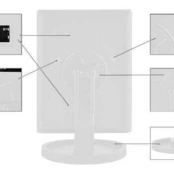 - 22 LED DIOD – ogledalo ima kar 22 LED diod, ki so nameščene na njegovih robovih. Ta razporeditev LED diod omogoča popolno vidljivost vsakega dela obraza, dekolteja ali vratu. Intenzivnost LED osvetlitve je mogoče nastaviti z gumbom na dotik, ki se nahaja na dnu ogledala.