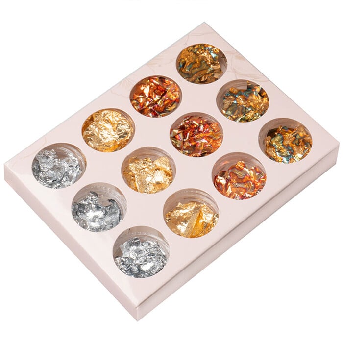Ta dvostransko pozlačena folija, najtanjša na trgu, ponuja neskončne možnosti za ustvarjanje edinstvenih in impresivnih dizajnov nohtov. Njen kovinski lesk spominja na tekoče zlato in srebro, idealen za ustvarjanje prefinjenih okraskov ali posrebrenih učinkov. Bodite ustvarjalni in se poigrajte s folijo, da bodo vaši nohti dobili videz pravega aluminijastega sijaja!