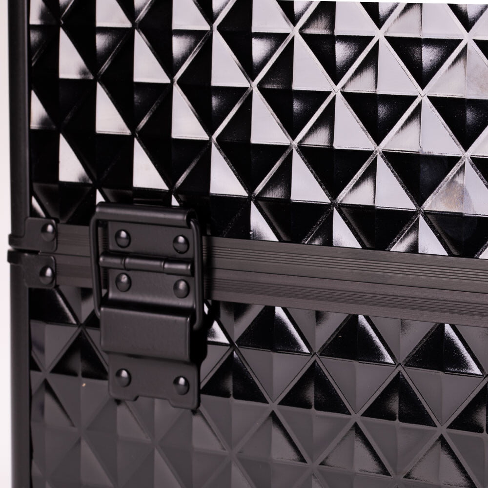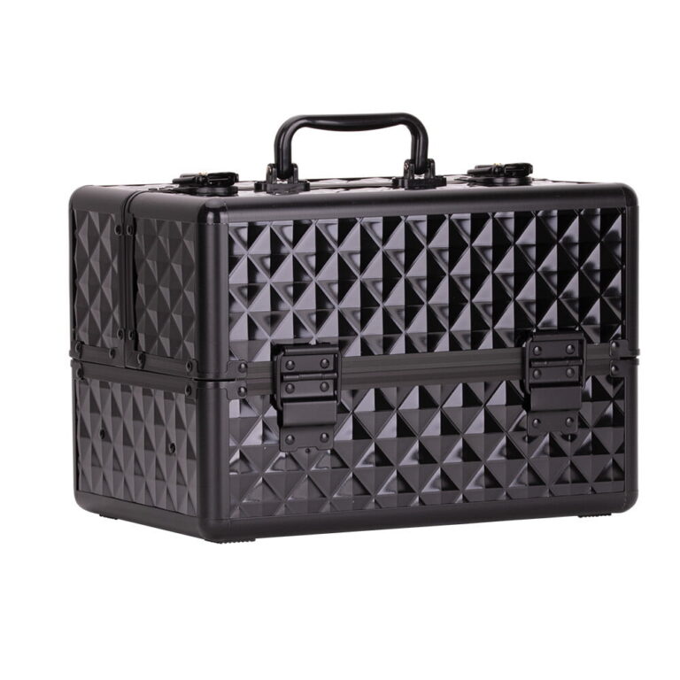 Zaradi lahke konstrukcije je ta etui izjemno praktičen za shranjevanje laka za nohte ali druge kozmetike, služi pa tudi kot odličen potovalni pripomoček. Funkcionalni in privlačni etui za kozmetiko/ličila, idealen za stiliste nohtov, kozmetičarke, vizažiste, ki delajo na terenu, ali za shranjevanje kozmetike doma. Trden, zložljiv in optimalno velik etui omogoča enostavno vstavljanje UV in LED svetilke polne velikosti. Specifikacije: Priložena je ključavnica in 2 ključema. Enostavno čiščenje – površina je v celoti pralna. Notranjost je obložena z mehkim materialom, podobnim žametu. Dimenzije : Višina: 20 cm Dolžina: 20 cm Širina: 30 cm