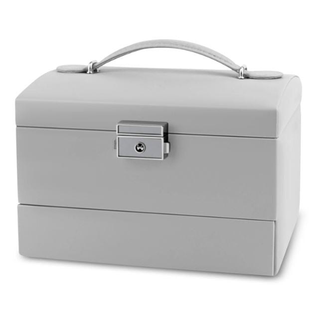Praktična škatlica za nakit z ročajem za nošenje in funkcijo zaklepanja proti nenamernemu odpiranju. Dimenzije (dolžina/višina/širina): 17,5 x 12,3 x 13,7 cm