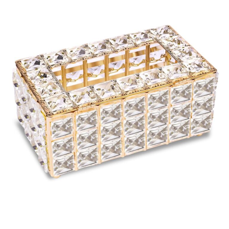 Organizator za robčke, rokavice, vatirane blazinice je odlična rešitev, ki vam bo pomagala ostati organizirani med lepotnimi tretmaji, hkrati pa bo vašemu prostoru dodala sijaj in stil. Če ga postavite na toaletno mizico, v kopalnico ali na pisalno mizo, bodo robčki ali rokavice na dosegu roke, vaš delovni prostor pa bo bolj prostoren. Zahvaljujoč organizatorju boste svojemu kozmetičnemu prostoru dodali eleganco in prefinjen videz. Izdelan je iz trpežne kovine s 3D kristali , ki dajejo učinkovit videz v vsakem prostoru. Naš organizator lahko kombinirate z dopolnilnim organizatorjem za čopiče: https://pikabooshop.com/proizvod/beauty-program/organizator-za-kistove-crystal-bling/