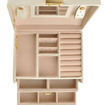 • ZMOGLJIVOST – Z 20 različnimi predali in vdolbinami vam bo skrinja pomagala popolnoma nadzorovati vrstni red v vaši zbirki nakita.