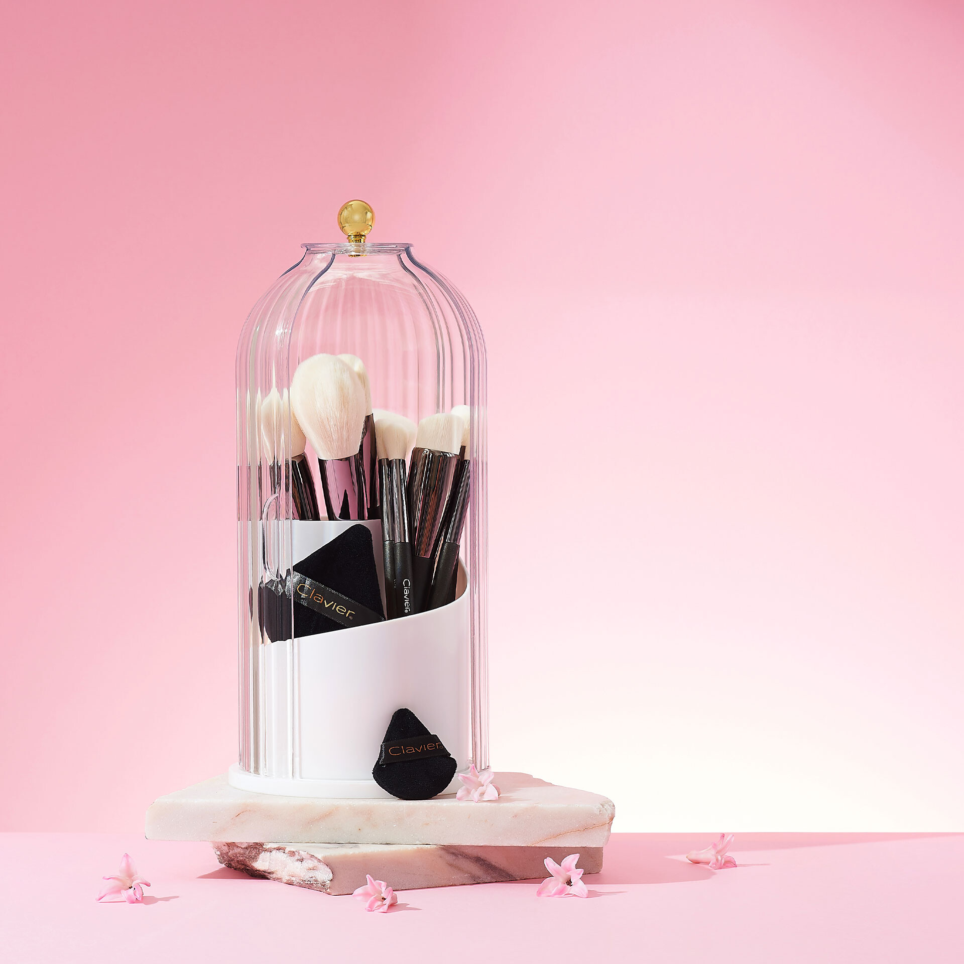 Imate težave z organiziranostjo čopičev za ličenje ali manikuro? Ne veste, kam bi jih dali? Naš organizator vam bo pomagal ostati organizirani. Vrtljivi organizator za čopiče je odlična rešitev za vse ljubitelje ličenja. Zahvaljujoč inovativni konstrukciji in funkcionalni zasnovi omogoča enostaven dostop do vseh vaših čopičev, kar znatno izboljša vašo vsakodnevno nego in umetniško rutino. Prednosti organizatorja: