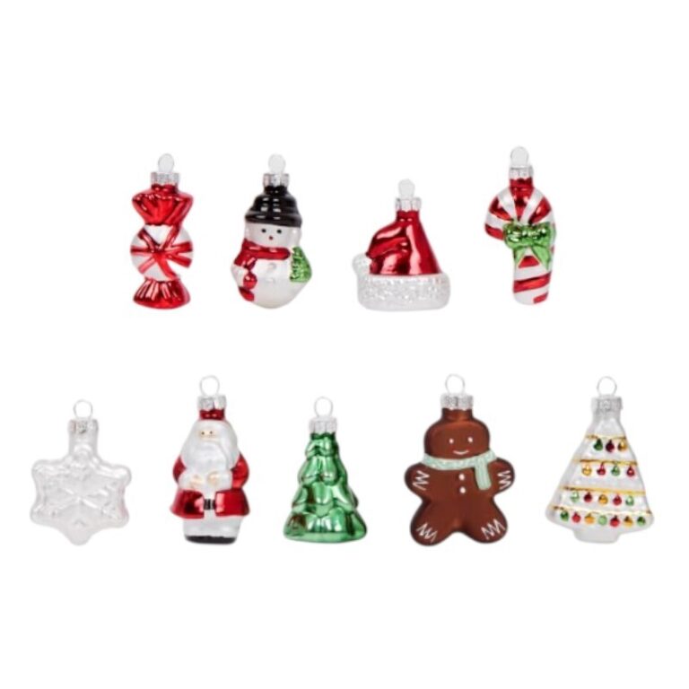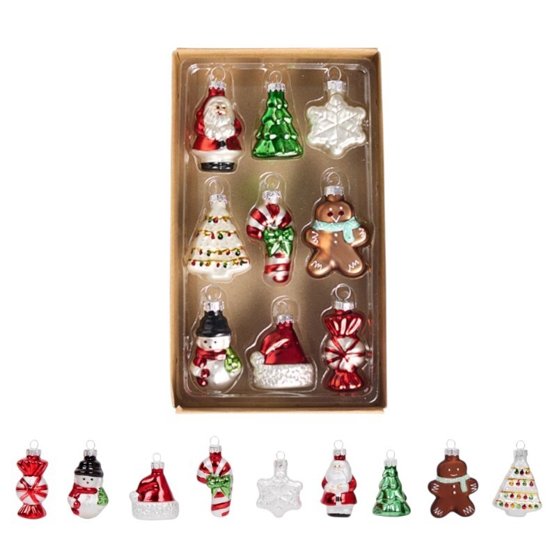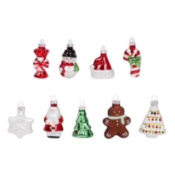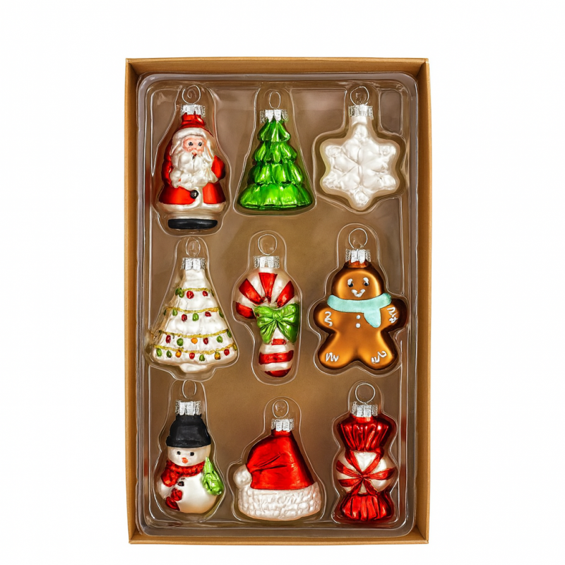 Zahvaljujoč njim je božična čarovnija še večja! Pakirano v škatli Specifikacija: Komplet 9 kosov Višina 1 kosa: od 4,5 cm do 5,5 cm Širina: od 1,5 cm do 3,9 cm Material: Steklo Dimenzije embalaže: 21 cm x 12,5 cm x 4,2 cm Teža: 100 g Začutite božično vzdušje!
