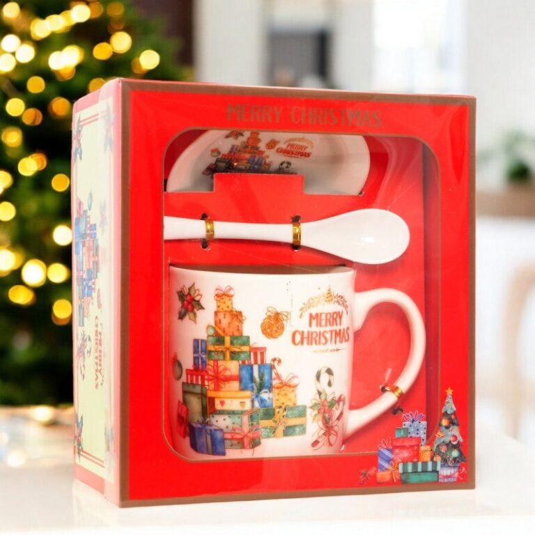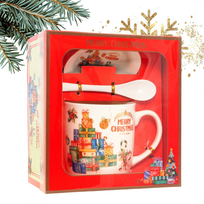 Popoln pripomoček za vse ljubitelje kave ali čaja. Specifikacije: Material: keramika / nerjaveče jeklo Barva: rdeča Prostornina: maks. 440 ml Dimenzije: 9 cm x 8,5 cm Premer krožnika: 9,5 cm Dolžina žličke: 13 cm Čiščenje: Izdelek je namenjen ročnemu pomivanju. Dimenzije embalaže: 18 cm x 16,5 cm x 10 cm Teža: 490 g bruto Komplet je pakiran v okrasni kartonski škatli. Začutite božično vzdušje!