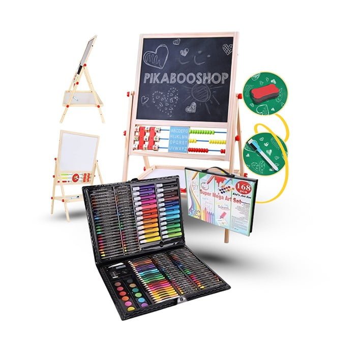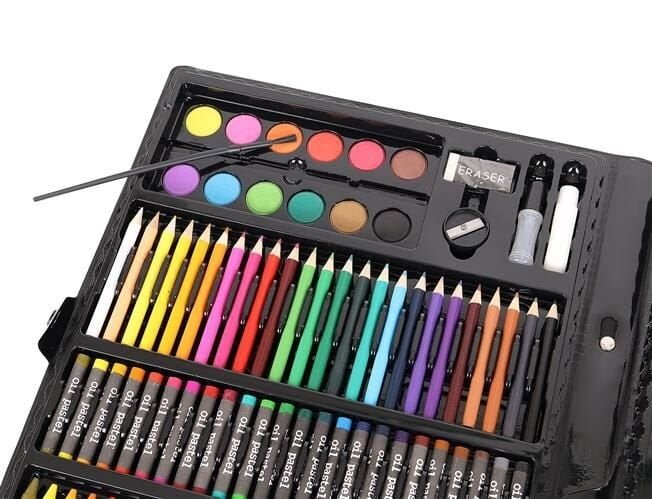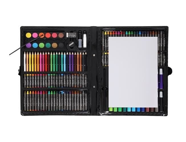 • 168 ELEMENTOV – s pomočjo ogromne izbire 24 barvic, 24 flomastrov, 48 oljnih pastelov, 48 voščenih pastelov, 12 akvarelnih barv, šilčkov, lepila, korektorjev, radirk, zabava in ustvarjanje malih umetniških duš še nikoli ni bilo lažje