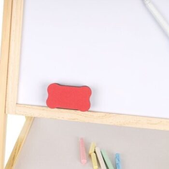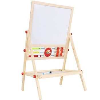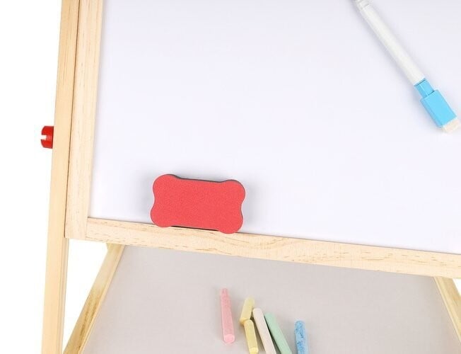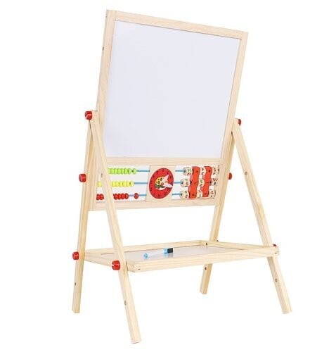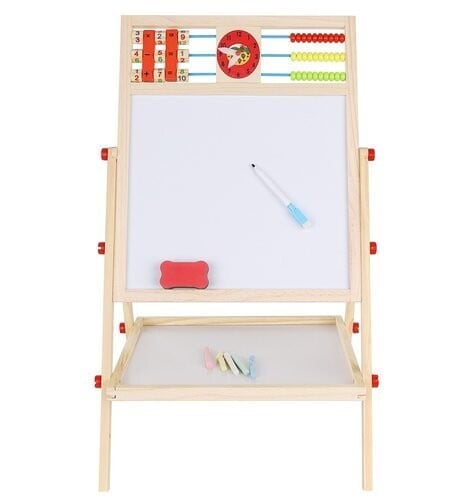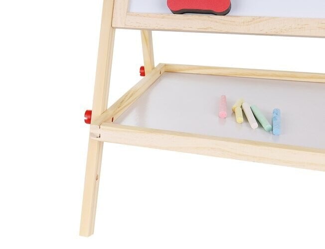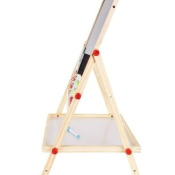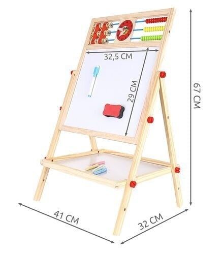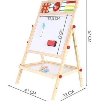• LES – ogrodje večnamenske učne table je v celoti izdelano iz lesa – vse je popolnoma brušeno in varno za otroke . Tabla je vrtljiva in se lahko uporablja na dva načina. Lahko jo usmerite na črno ali belo stran . Komplet vsebuje velike vijake, ki omogočajo priročno vrtenje in spreminjanje položaja.
