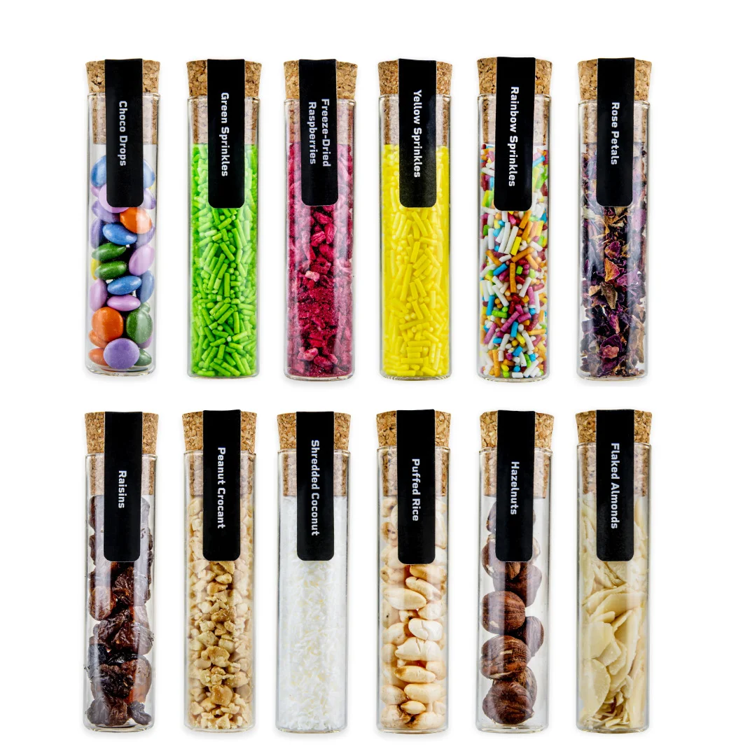 • Naravne sestavine in 12 dodatkov za personalizacijo pralin (posip/nadev) – od sadnih do hrustljavih.