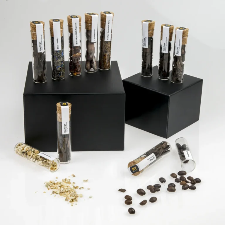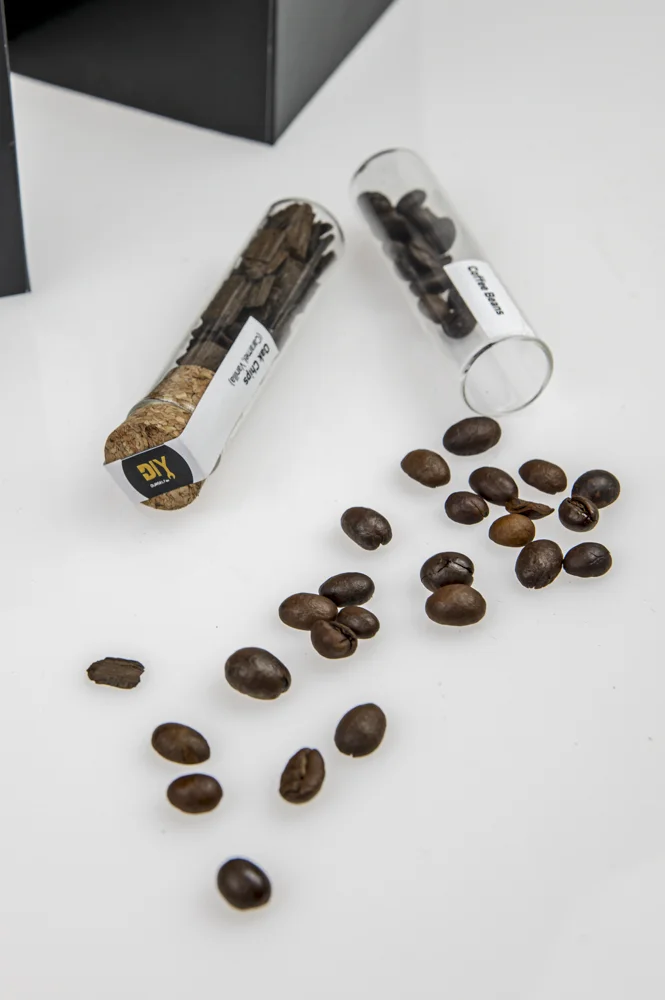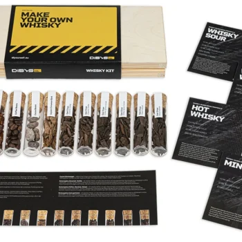 V svoj kozarec vnesite »dušo soda«! Ta mini set vsebuje skrbno izbrane arome in lesne elemente v 12 stekleničkah, ki aromatizirajo legalno kupljeno osnovo (npr. vodko/nevtralni alkohol) v profil, ki ga navdihuje viski: note hrasta, vanilije, karamele in začimb . Idealno za darila, domače degustacije in kreativne mešanice.