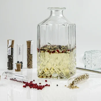 1. Osnova: legalno kupljen nevtralni alkohol (npr. 40 % vol.).