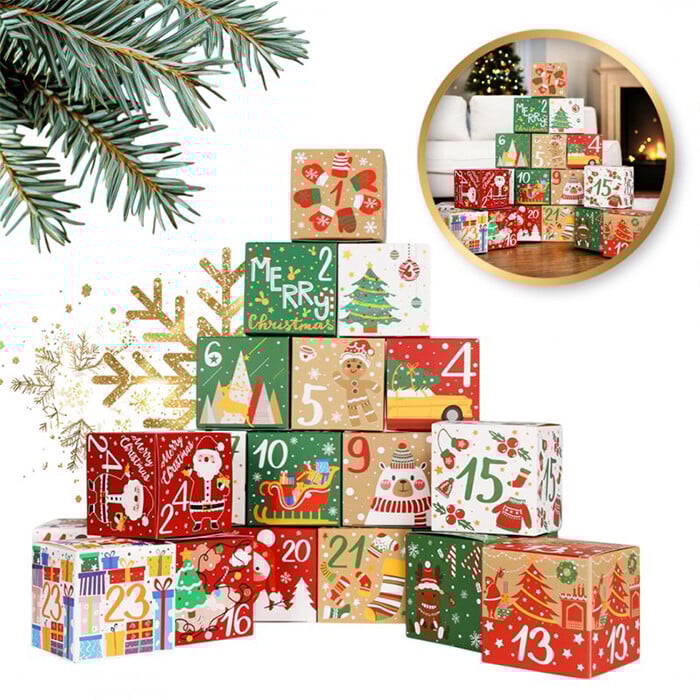 Adventni koledar DIY 24 pisanih škatel za odpiranje