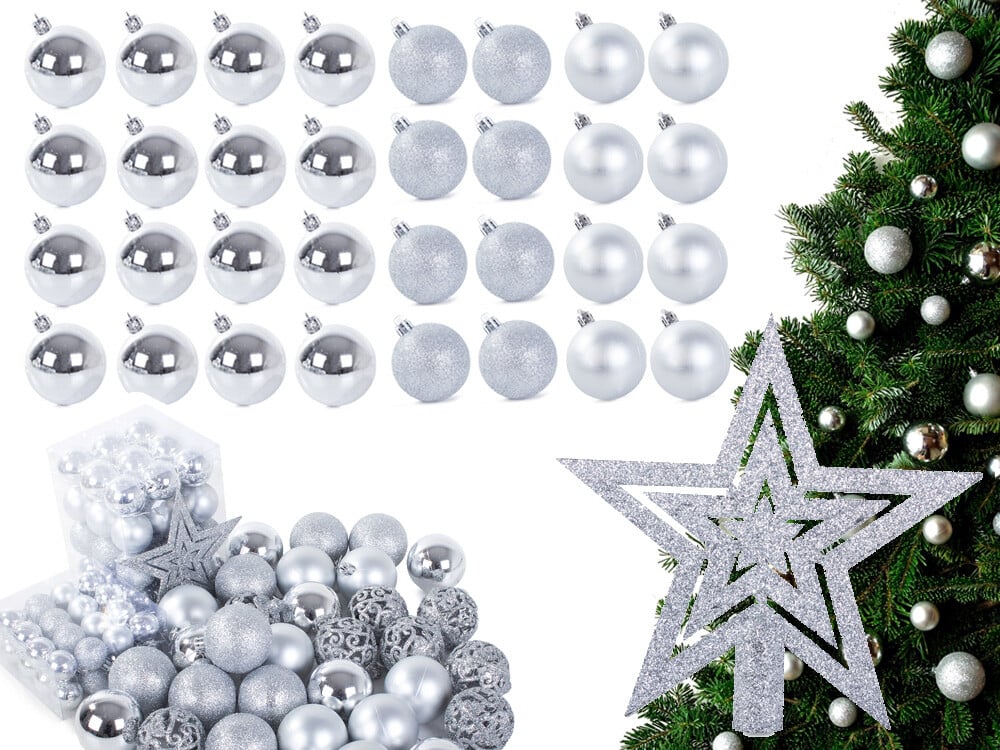 Božične kroglice – komplet 100 kosov (srebrne)