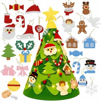 Želite v svojem domu ustvariti čarobno praznično vzdušje ? Naše božično drevo iz filca z okraski in LED lučkami je popolna rešitev!