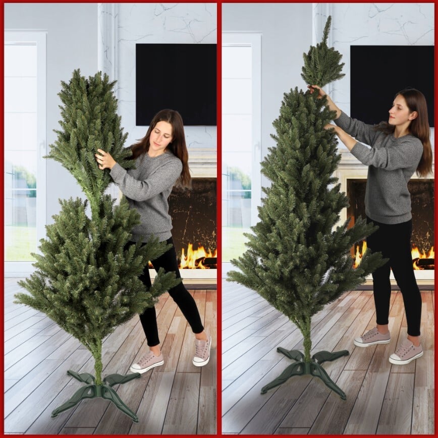 ✅Sestavite vse dele. Sestavite stojalo, nato pritrdite krošnje drevesa, začenši z največjimi. ✅Začnite s spodnjimi vejami. Upognite jih stran od debla božičnega drevesa. Po možnosti pod pravim kotom ali nekoliko manjšim (odvisno od vaših preferenc). ✅Dajte vejam obliko. Upognite iglice, začenši s tistimi, ki so najbližje deblu. Enojne iglice upognemo navzgor, dvojne iglice na stran in trojne iglice na stran in navzgor. ✅ Nadaljujte z okraševanjem drevesa. Božično drevo lahko okrasite s kroglicami, lučkami in drugimi okraski, ki mu bodo dali edinstven, prazničen videz! OPOMBA: Smer iglic lahko spremenite glede na svoje želje. Če bi morale biti v vaši predstavi o popolnem božičnem drevesu obrnjene v drugo smer, jih spremenite. Zgornja navodila so ilustrativna in vam omogočajo, da dosežete visoko gostoto vej .