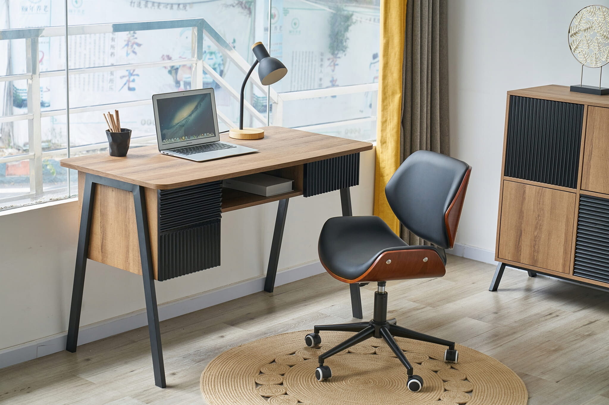 • Vgrajena omara : Zagotavlja dodaten prostor za shranjevanje večjih predmetov ali arhiviranje pomembnih dokumentov, s čimer zagotavlja, da je vse na dosegu roke.