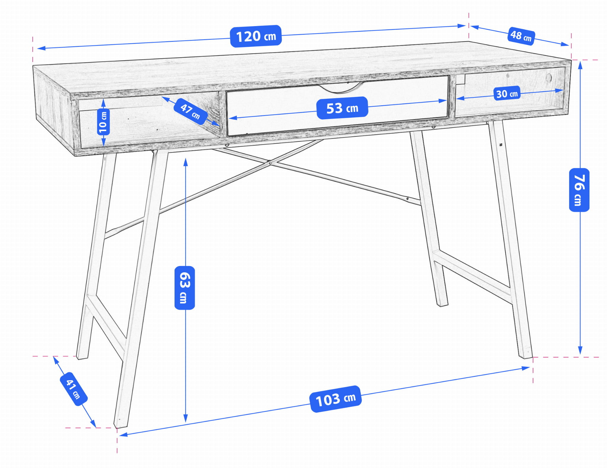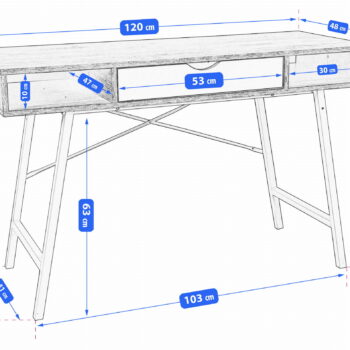 Širina : 120 cm Globina : 60 cm Višina : 75 cm Ta miza ponuja optimalno ravnovesje med stilom in funkcionalnostjo. Idealna je za tiste, ki iščejo zanesljiv in eleganten delovni prostor.