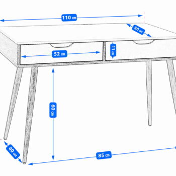 Širina : 110 cm Globina : 50 cm Višina : 75 cm Ta miza ponuja optimalno ravnovesje med stilom in funkcionalnostjo. Idealna je za tiste, ki iščejo zanesljiv in eleganten delovni prostor.