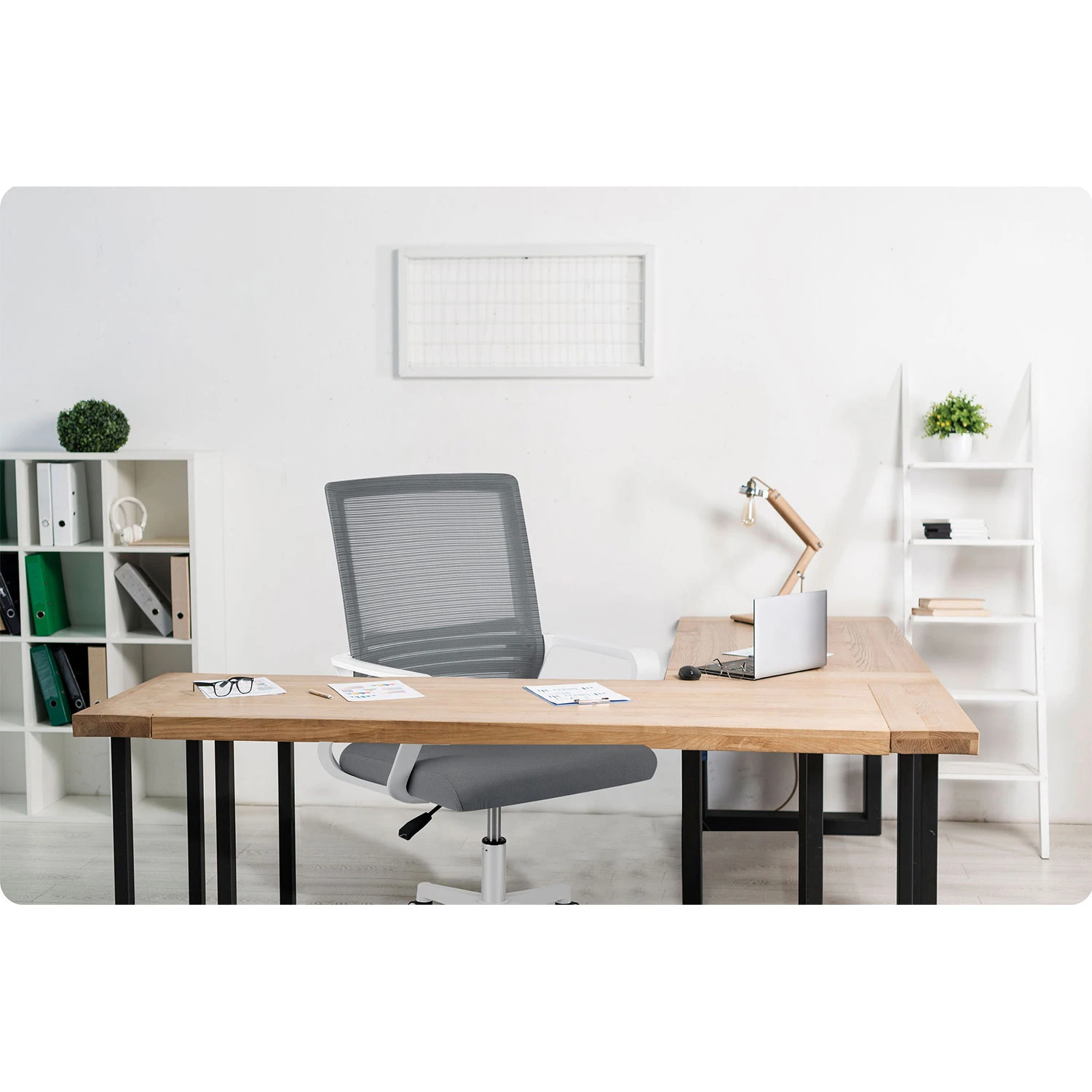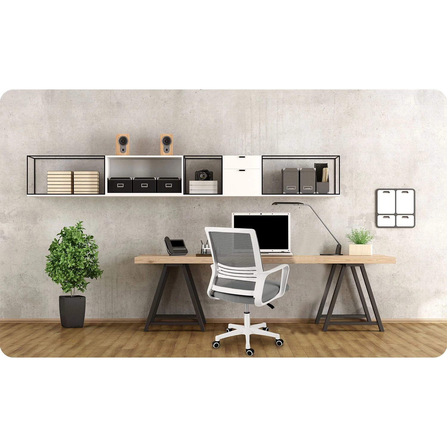 • Trdna konstrukcija : Petnožno podnožje z gumiranimi kolesi zagotavlja stabilnost in mobilnost brez poškodb tal.