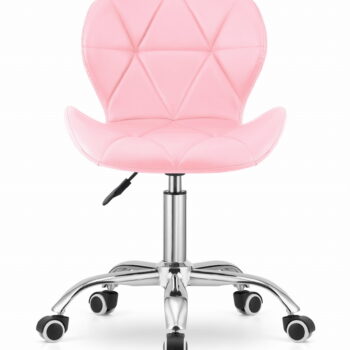 Material eko usnje: roza Kovina Plastika Dimenzije Širina: 46,5 cm Širina sedeža: 46,5 cm Globina: 56,5 cm Globina sedeža: 36,5 cm Višina: 73,5-83,5 cm Višina sedeža: 42-53 cm Premer koles: 5 cm Skupna širina koles: 5 cm Nosilnost: 110 kg