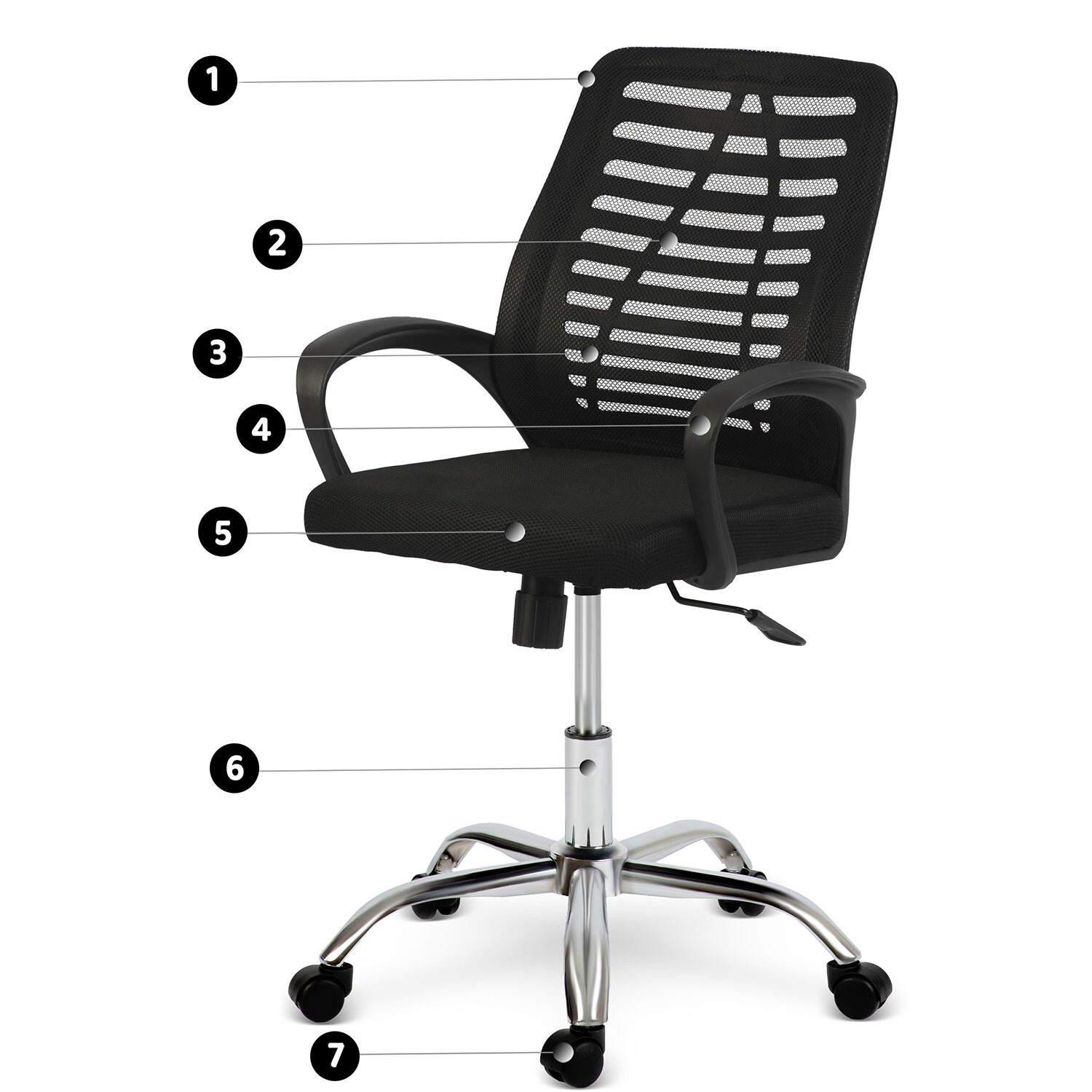 - Plinska vzmet zagotavlja gladko nastavitev višine sedeža