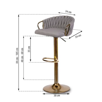 Elissian barski stol z naslonjalom, siv z zlatim podnožjem