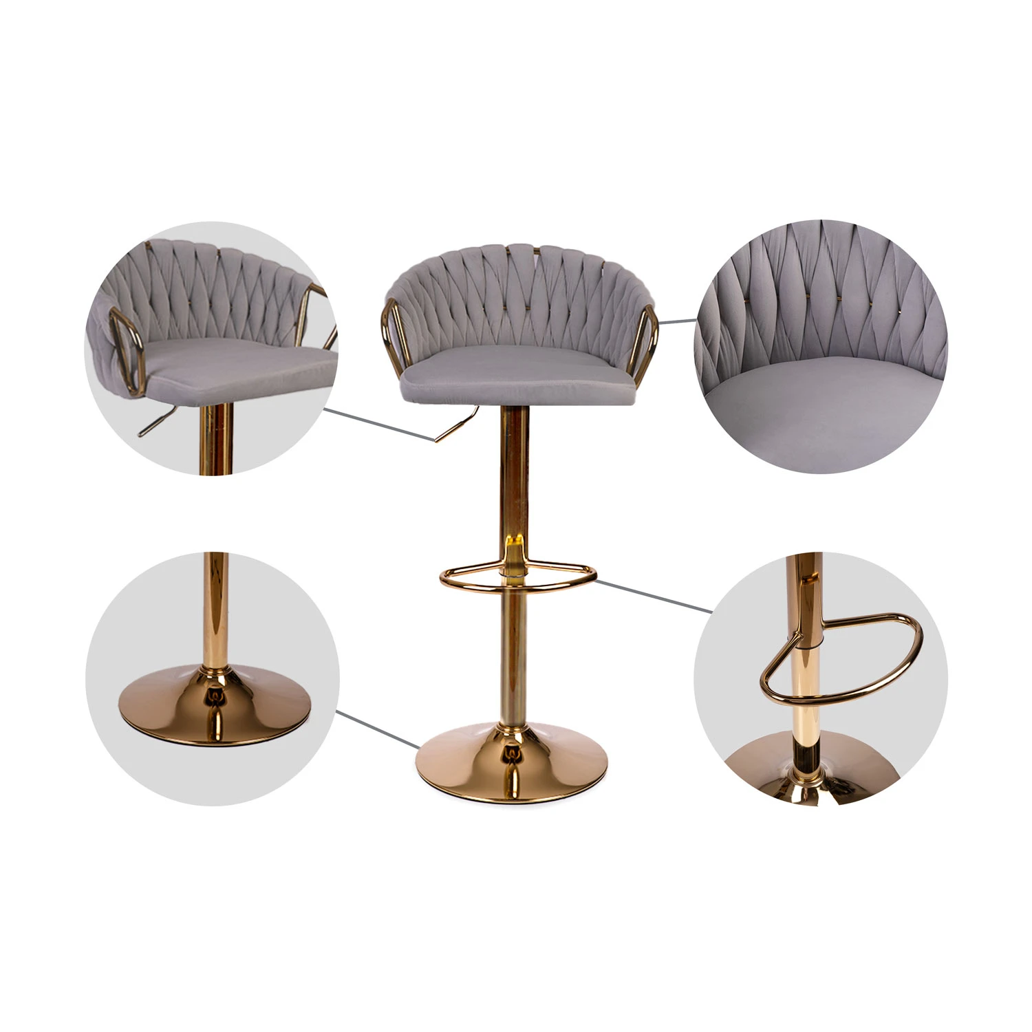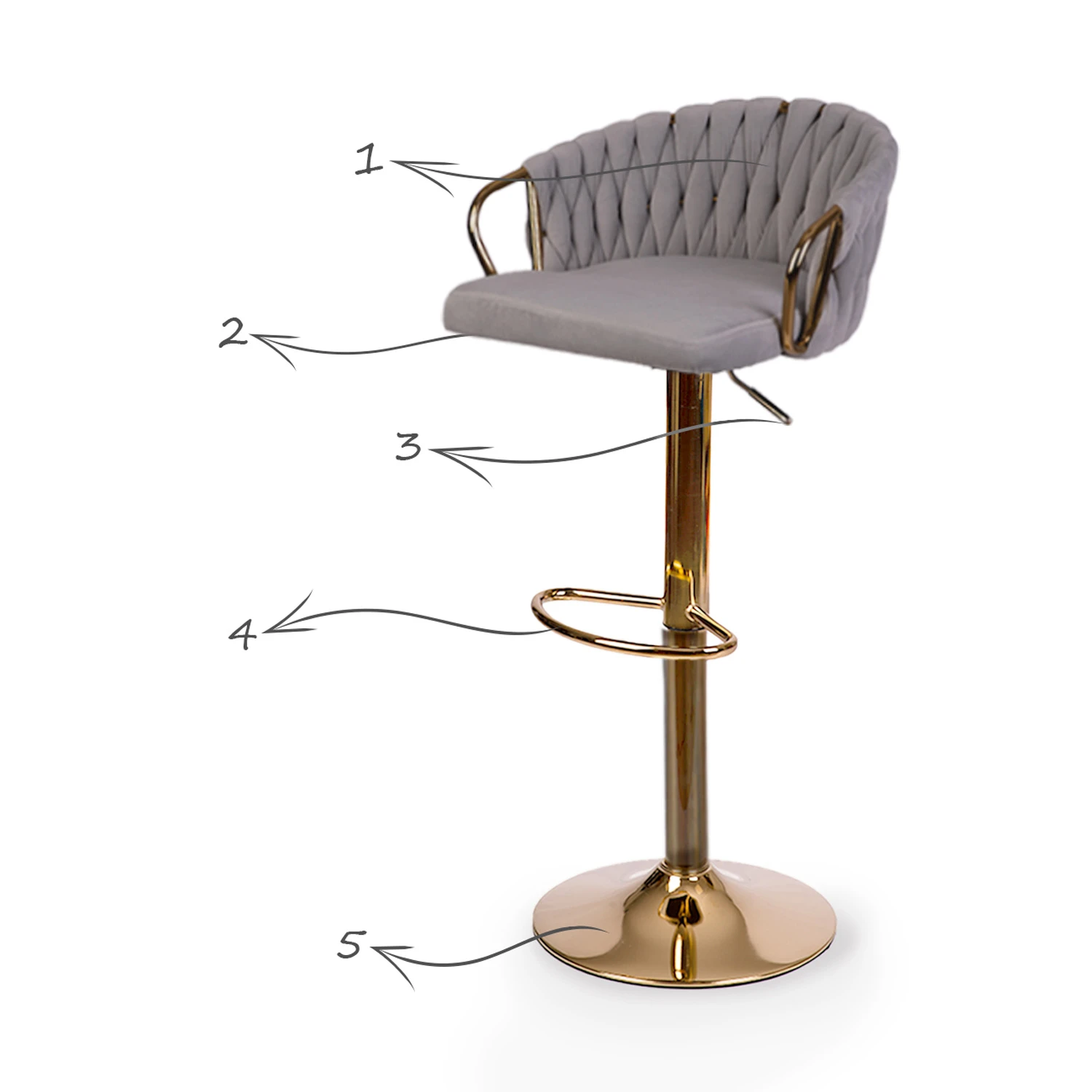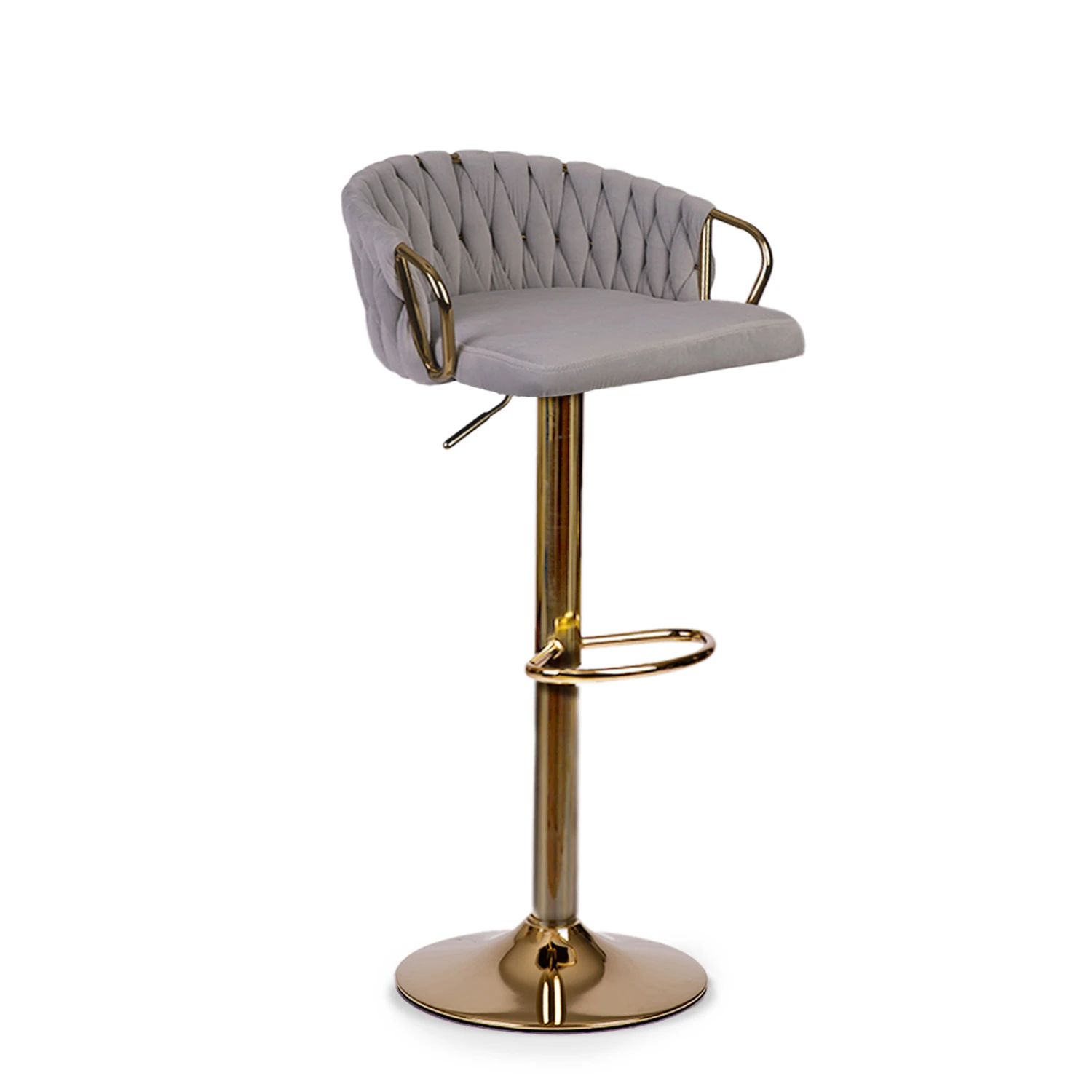 Elissian barski stol z naslonjalom, siv z zlatim podnožjem