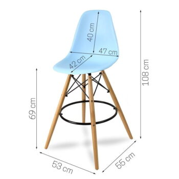 Model: Oslo Ocean Barva sedeža: modra Material sedeža: polipropilen Noge: naravni les Višina stola : 108 cm Širina stola : 53 cm Globina stola: 40 cm Garancija: 24 mesecev promonamjestaj