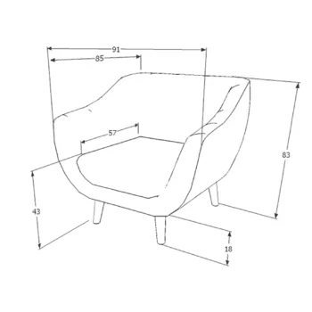 • Dimenzije : širina 83 cm, višina 91 cm, globina sedeža 57 cm, višina sedeža 43 cm, višina naslonjala 85 cm.