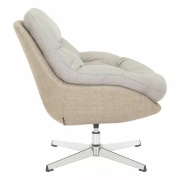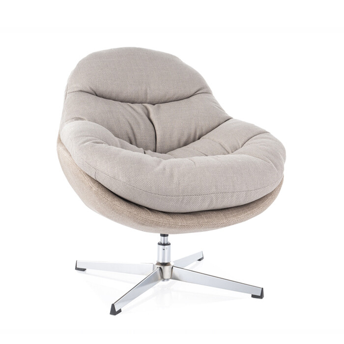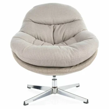 Fotelj Peggie je sodoben in funkcionalen kos pohištva, idealen za sodobno notranjost. Oblazinjen je v visokokakovostno tkanino v sivo-bež barvi, ki zagotavlja udobje in estetski videz. Njegovo kovinsko podnožje s kromirano površino zagotavlja stabilnost in vzdržljivost. Ključne značilnosti: