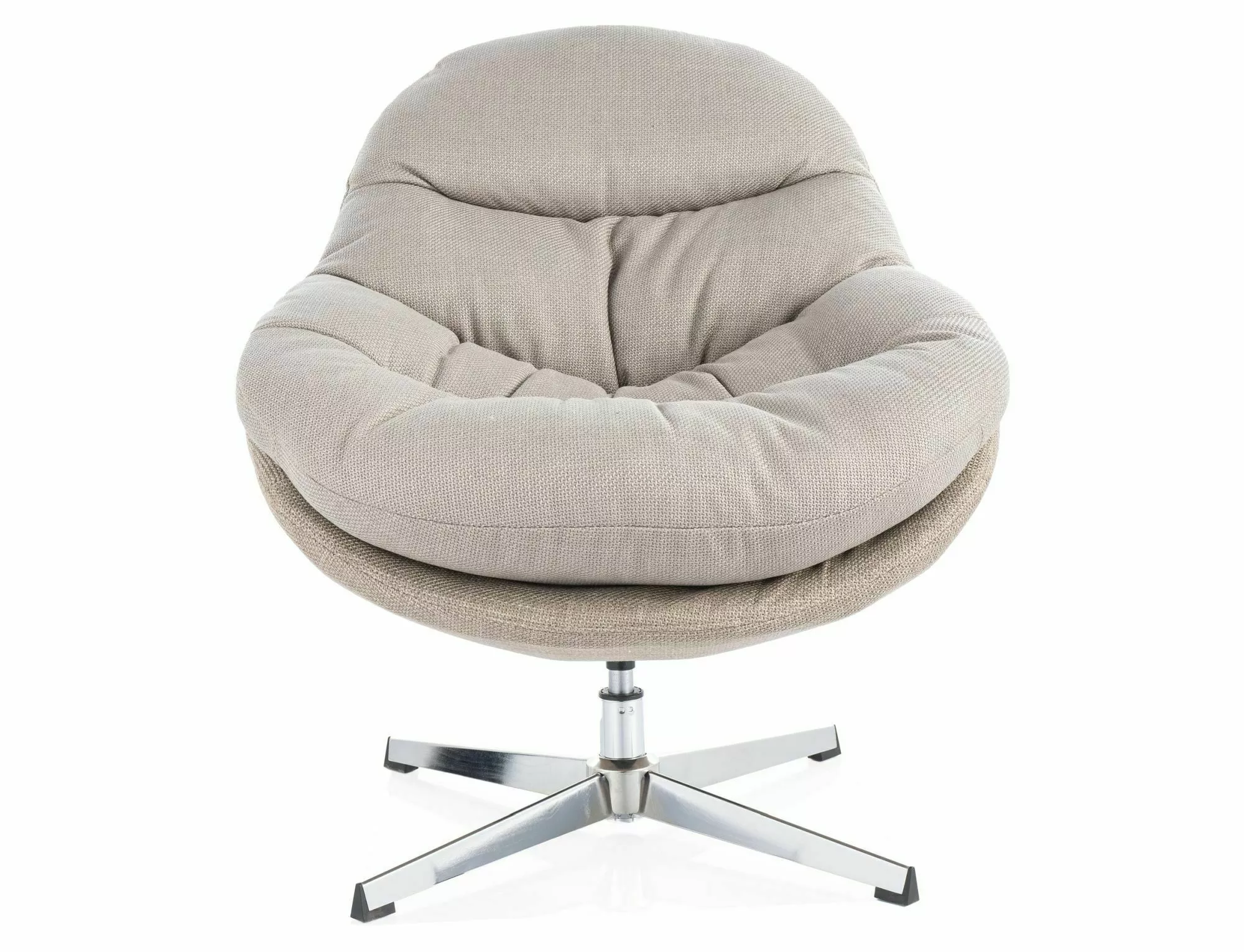 Fotelj Peggie je sodoben in funkcionalen kos pohištva, idealen za sodobno notranjost. Oblazinjen je v visokokakovostno tkanino v sivo-bež barvi, ki zagotavlja udobje in estetski videz. Njegovo kovinsko podnožje s kromirano površino zagotavlja stabilnost in vzdržljivost. Ključne značilnosti: