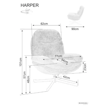 Fotelj Harper je sodoben in udoben kos pohištva, idealen za sodobno notranjost. Oblazinjen je v visokokakovostno tkanino, ki je na voljo v različnih barvah, vključno z bež, črno, olivno in sivo, zaradi česar se zlahka prilega različnim dekorativnim slogom. Ključne značilnosti: