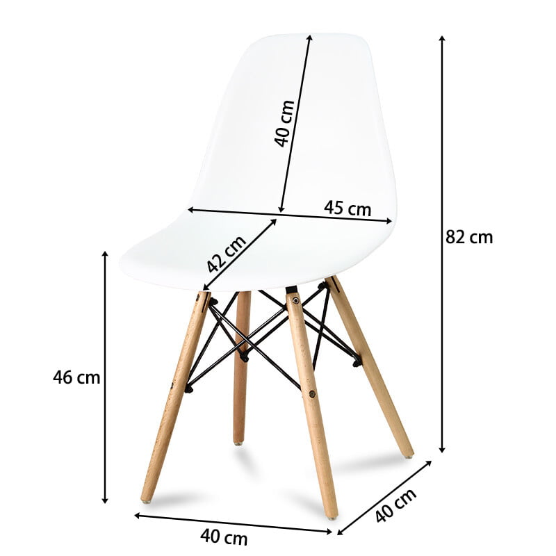 Miza: Barva zgornjega dela : bela Noge: bukov les Material zgornjega dela : MDF plošča Višina: 74 cm Plošča mize : 60 cm Stoli: Barva sedeža: bela Material sedeža: polipropilen Noge: bukev Dimenzije: 40 cm x 45 cm x 82 cm Teža: 2,5 kg