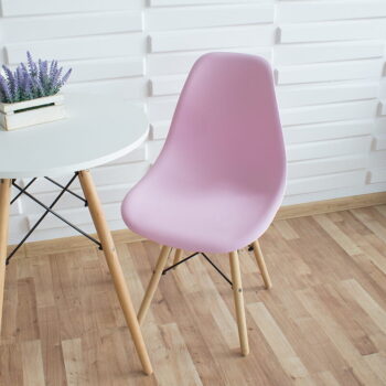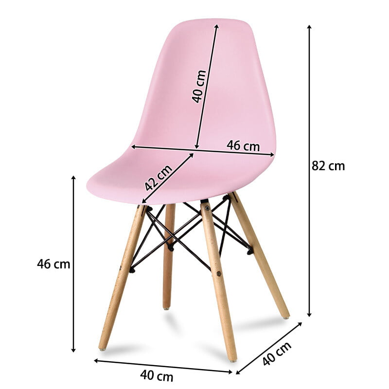 Miza: Barva zgornje plošče : bela Noge: bukov les Material zgornje plošče : MDF plošča Višina: 74 cm Plošče mize : 60 cm Stoli: Barva sedeža: roza Material sedeža: polipropilen Noge: bukev Dimenzije: 40 cm x 45 cm x 82 cm Teža: 2,5 kg
