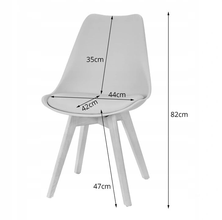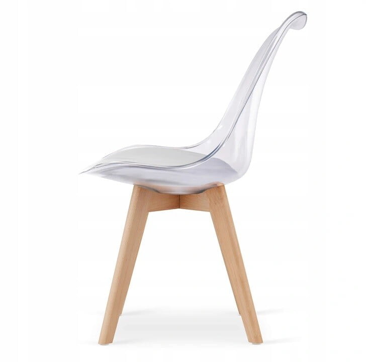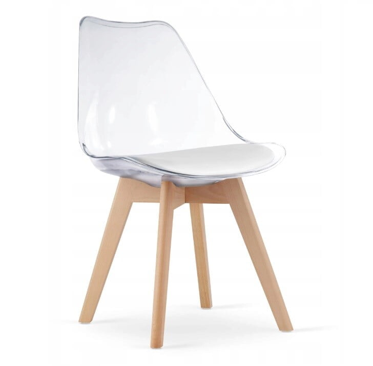 Model: Kris Barva sedeža: prozorna Barva blazine: bela Noge: bukov les Dimenzije: 44 cm x 52 cm x 82 cm