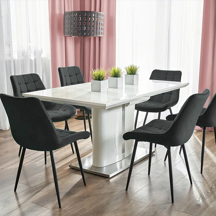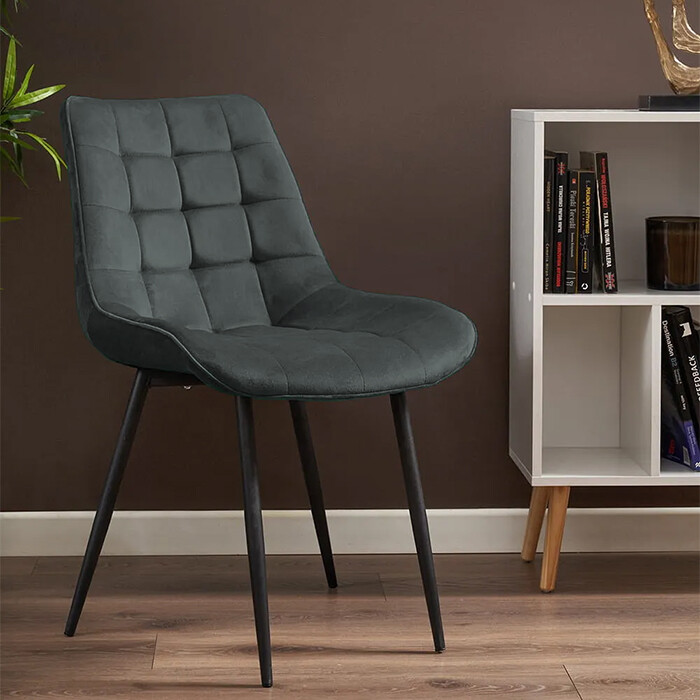 Žametno oblazinjenje iz velur tkanine je videti izjemno nežno, visoke in tanke črne noge pa zelo šik in zagotavljajo popolno stabilnost.