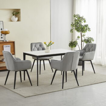 • Eleganten videz – stol doda šik vsakemu prostoru • Enostaven za čiščenje – velur tkanina je odporna na umazanijo • Enostavna montaža – stol lahko hitro in enostavno sestavite sami • Vsestranski – idealen za dnevno sobo, kuhinjo, jedilnico ali domačo pisarno • Udobje – popolnoma vrtljiv sedež (360°)