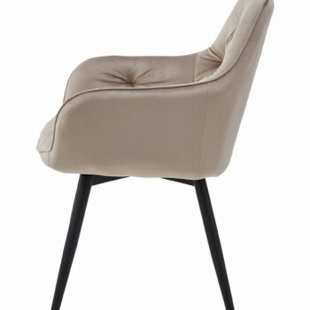 • Material oblazinjenja: visokokakovostna velur tkanina (žamet) • Barva oblazinjenja: temno bež • Material nog: kovina, črno prašno barvana • Največja obremenitev: 110 kg • Teža: približno 7 kg • Sestava: preprosta, samostojna sestava