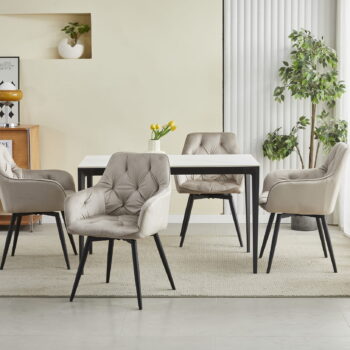 • Eleganten videz – stol doda šik vsakemu prostoru • Enostaven za čiščenje – velur tkanina je odporna na umazanijo • Enostavna montaža – stol lahko hitro in enostavno sestavite sami • Vsestranski – idealen za dnevno sobo, kuhinjo, jedilnico ali domačo pisarno • Udobje – popolnoma vrtljiv sedež (360°)