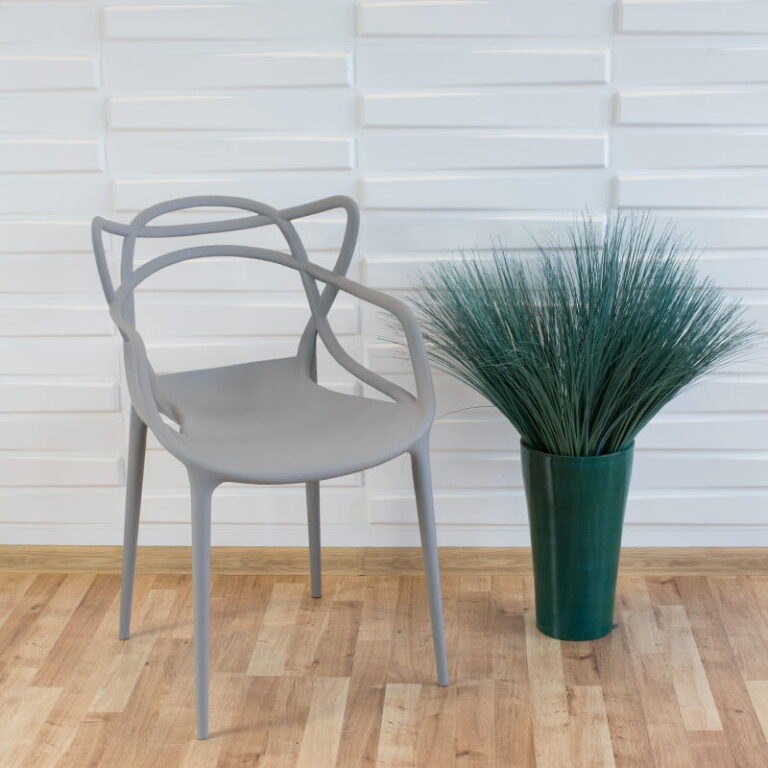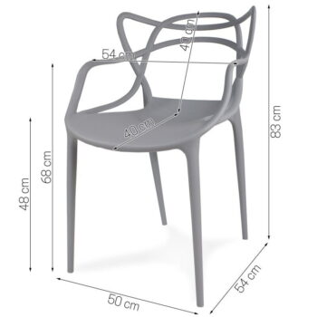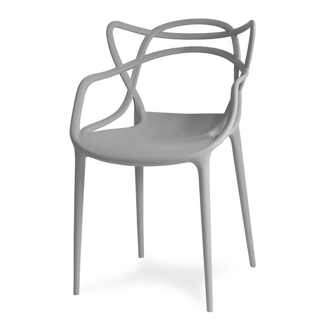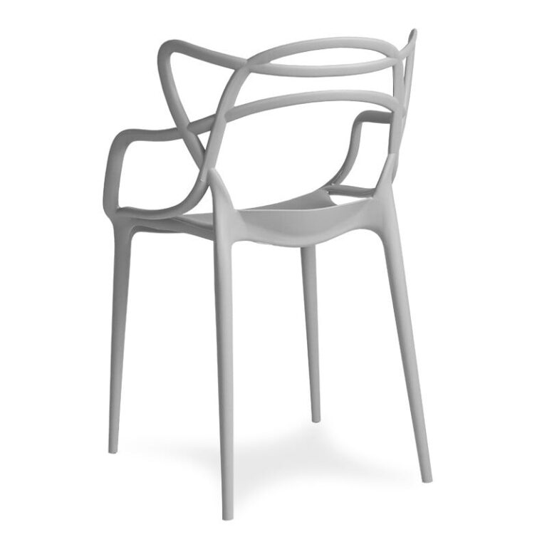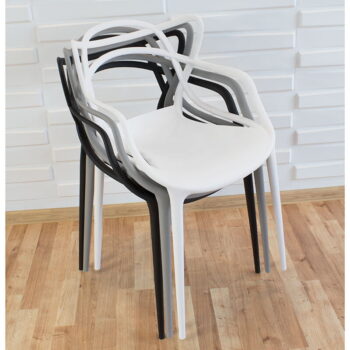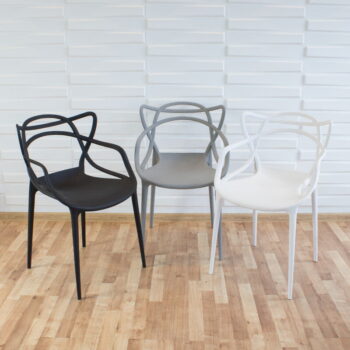 Edinstvenost stola temelji na igri polnih in praznih prostorov, ki jih ustvarja formalna kombinacija treh različnih naslonjalov, ki se prelivajo v obod sedeža.