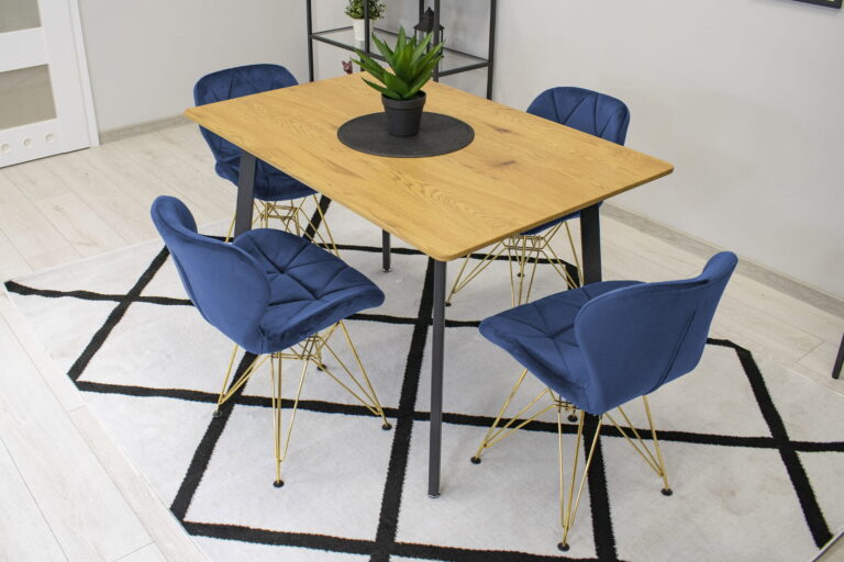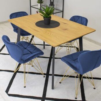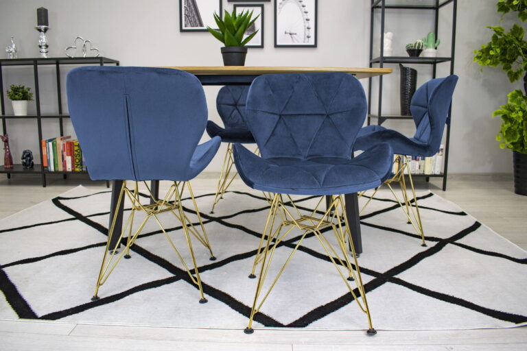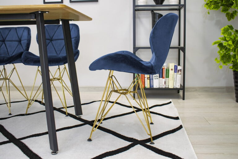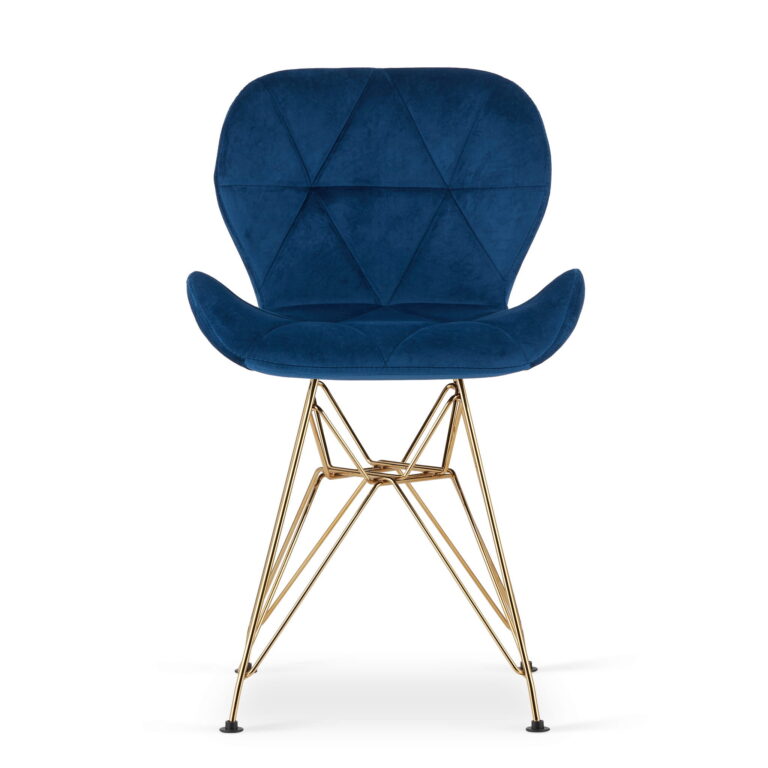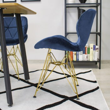 - Stol je na voljo v MODRI barvi z ZLATIMI nogami.