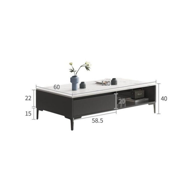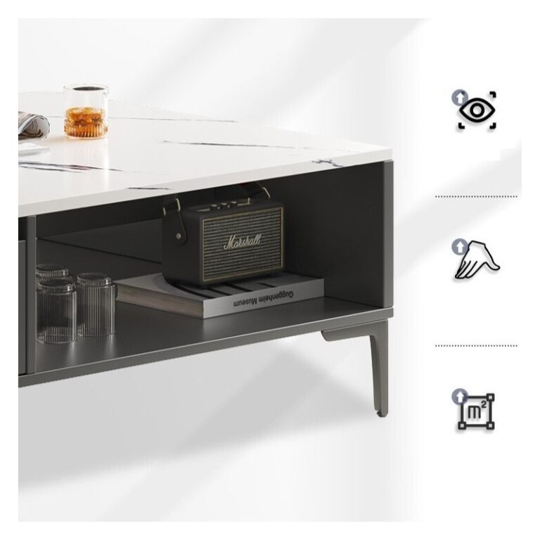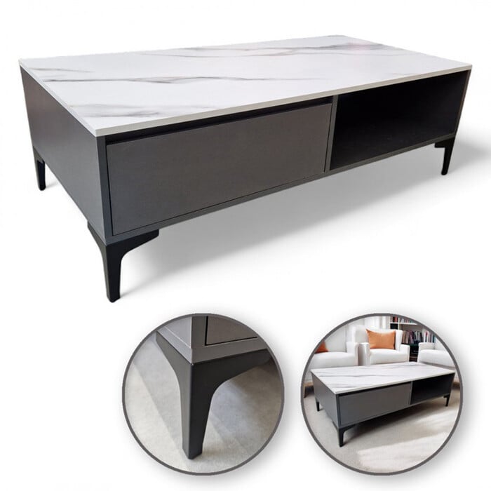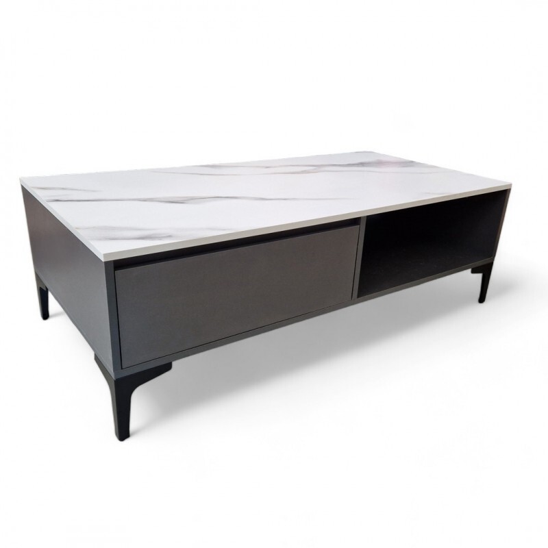 Njegova dvojna površina zagotavlja dodaten prostor za shranjevanje, siva površina z videzom marmorja in črne noge pa dodajo razkošen pridih vsaki notranjosti.